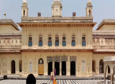 Kanak Bhawan is a revered temple in Ayodhya, dedicated to Lord Rama and Goddess Sita. It is believed that Queen Kaikeyi gifted this palace to Sita after her marriage to Rama, making it their personal residence. The temple is known as the "Golden Palace" due to its intricate gold embellishments. The structure has undergone multiple renovations, with the present temple built in 1891 by Queen Vrishabhanu Kunwari. The temple houses three pairs of idols of Rama and Sita, each with historical significance. The architecture reflects Rajasthani and Bundelkhand styles, featuring ornate carvings and a grand entrance. Kanak Bhawan is a major pilgrimage site, attracting devotees during Ram Navami and Janaki Navami.